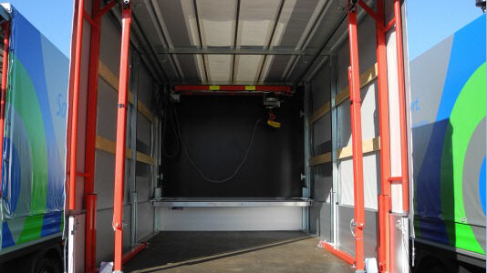Das Tragegerüst des Loading-Lift dient zugleich als Planenkonstruktion bei Pritschenfahrzeugen.