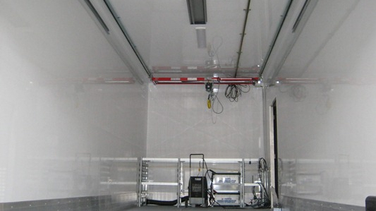 Für einen Aufleger der Fa. Mercedes wurde ein Loading-Lift-System entwickelt und eingebaut. Dieser Aufleger wurde für eine Skandinavien Expedition als Labor und Werkstatt genutzt.