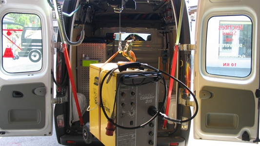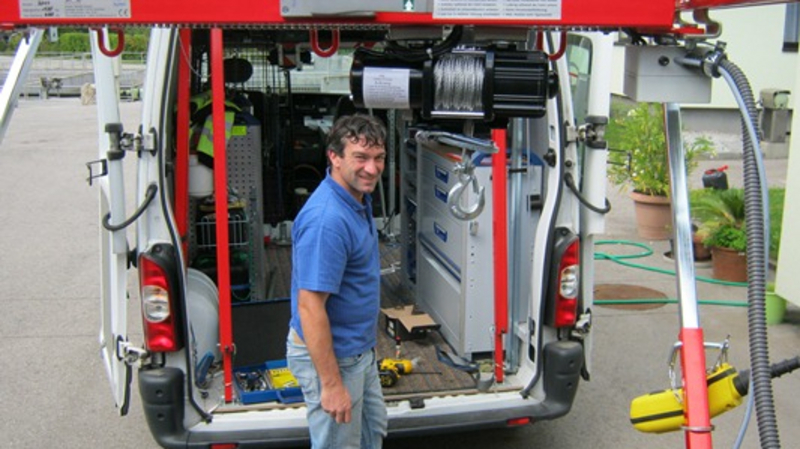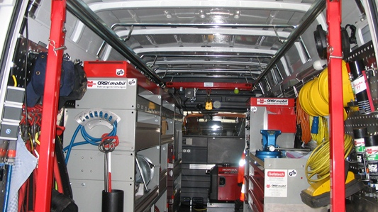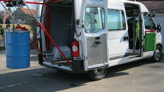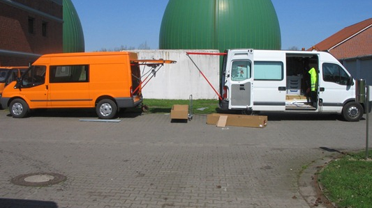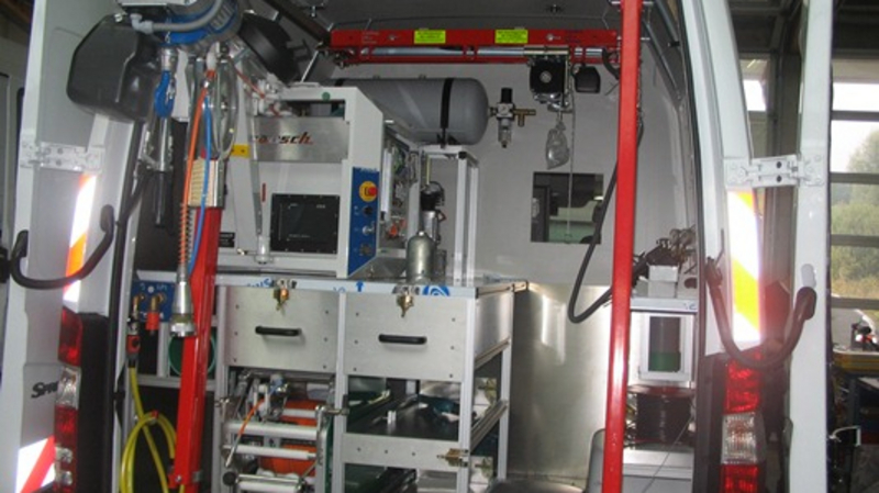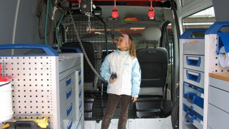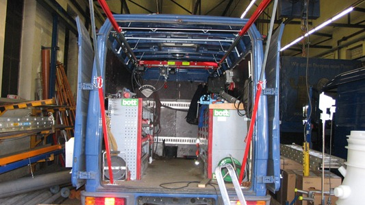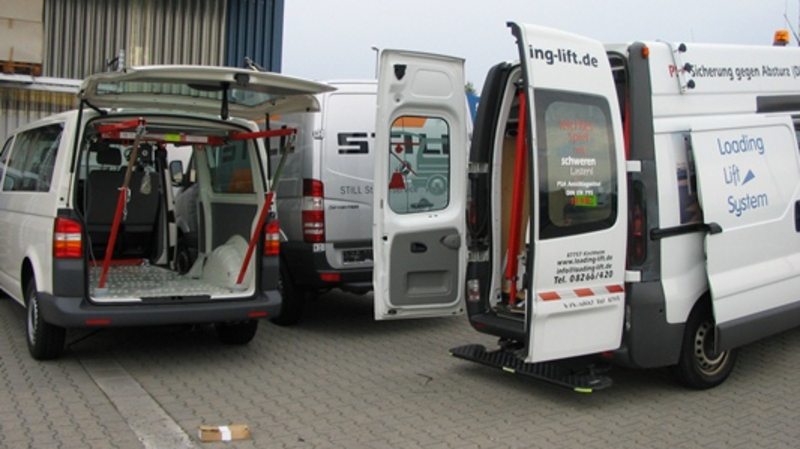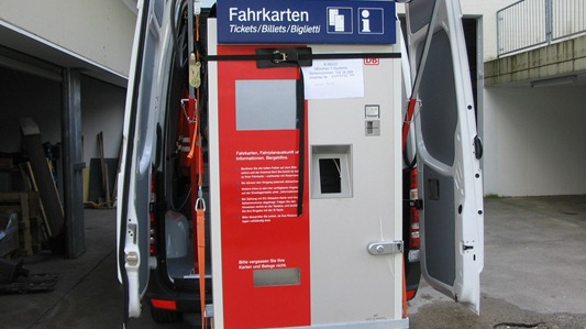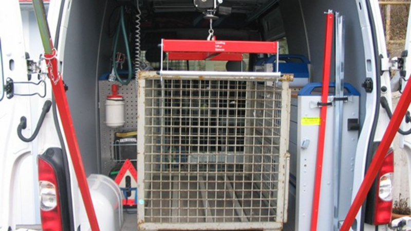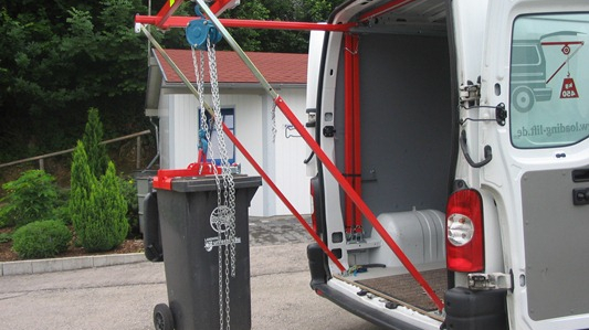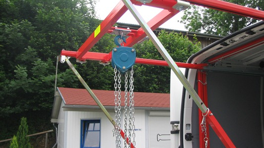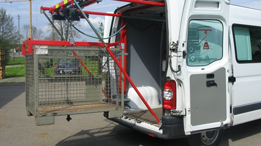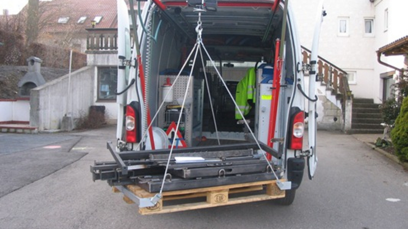 Für die DB-Net wurde eine Spezialanfertigung entworfen um Fahrkartenautomaten auszuliefern, oder zur Reperatur abzuholen. Wegen der geringen Fahrzeughöhe wurde mit Hilfe einer Umlenkrolle und versetzen der E-Winde die geforderte Höhe erreicht.