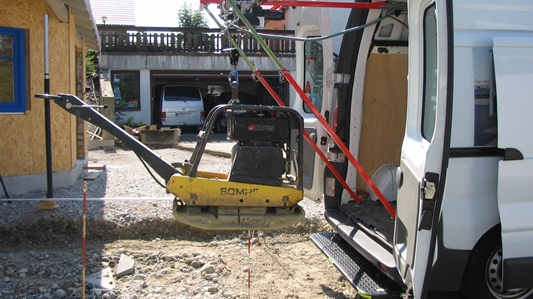 Selbst schwere Baumaschinen sind für den Loading-Lift das geringste Problem, ob zur- oder von der Baustelle geliefert werden muss, der Loading-Lift machts möglich und das mit nur einer Person!