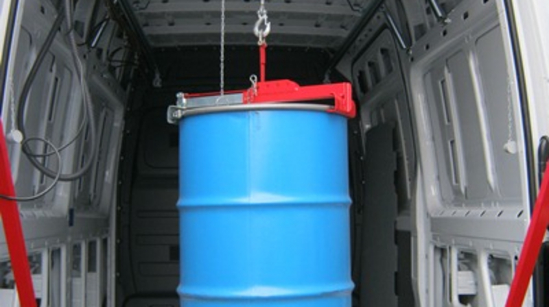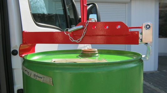 Eine von uns entwickelte Spezialhalterung ermöglicht Ihnen eine problemlose und gesicherte Verladung für Fässer mit einem Durchmesser von 37cm-60cm und einem Volumen von 60Ltr.- 205Ltr.