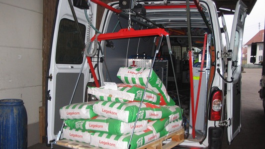 Selbst Gitterboxen stellen für den Loading-Lift keinerlei Probleme dar.